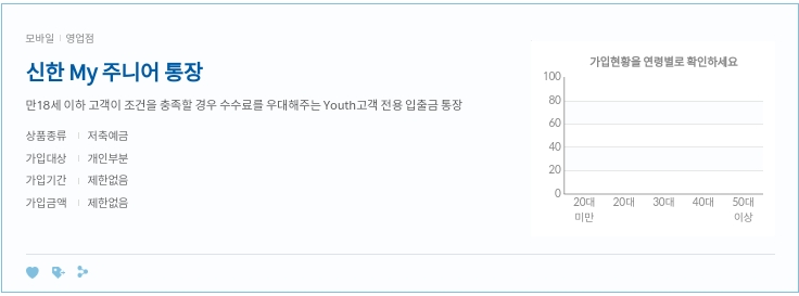 - 상품개요 : 만 18세 이하 고객이 조건을 충족할 경우 수수료를 우대해주는 Youth고객 전용 입출금 통장
