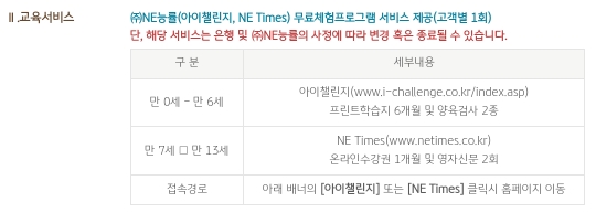 - 부가서비스 : 1) 저금통 2) 교육서비스