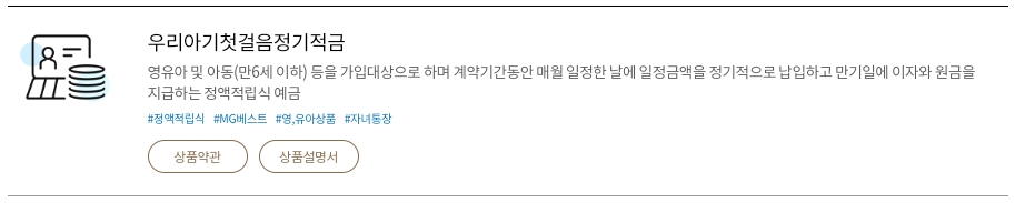 - 상품특징 : 아동 및 부모거래 시 우대이율 적용하는 정액적립식 예금