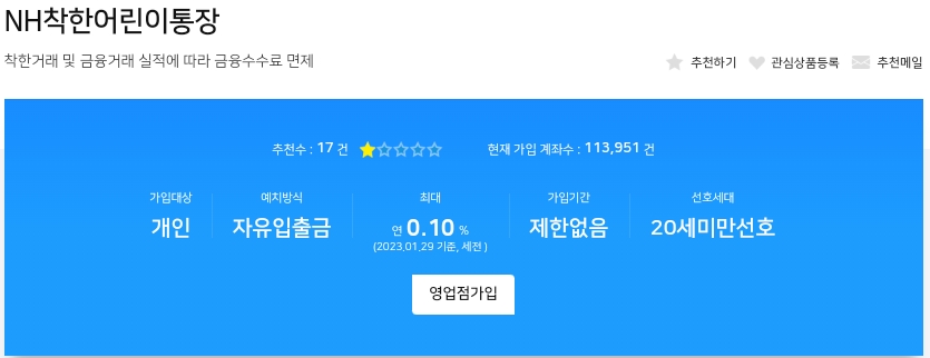 - 가입대상 : 만 13세 이하 개인(1인 1계좌)