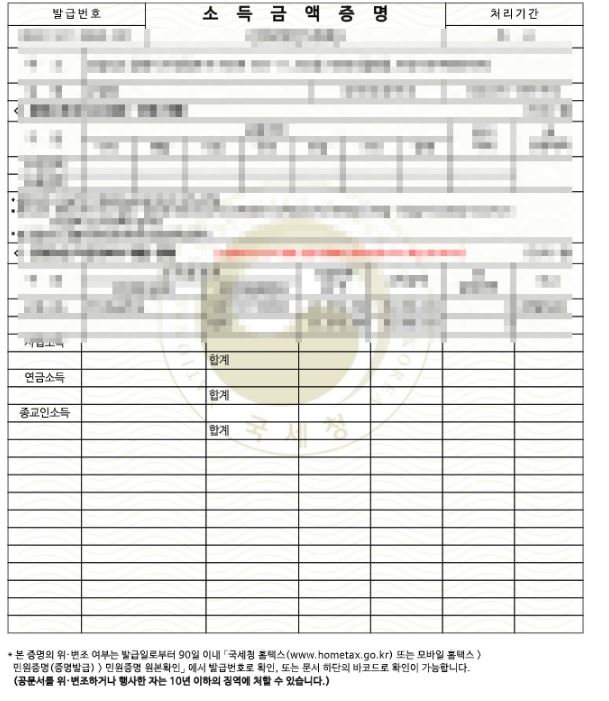 소득금액증명 발급 시 참고사항