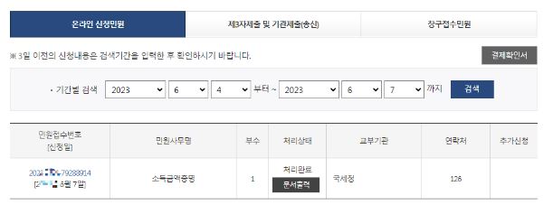 방문하여 소득금액증명원 발급 시