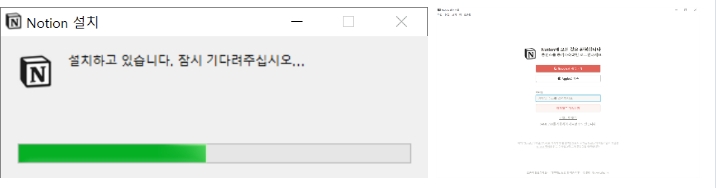 2) 프로그램 Notion 설치가 진행되며 설치가 완료되면 구글 및 애플 아이디를 이용해 로그인하거나 계정을 무료로 생성합니다.