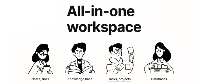 - 무제한 페이지와 블록, 테이블 및 데이터베이스, 마크다운, 끌어서 놓기, 웹 클리퍼, 템플릿, 장치 간 동기화,