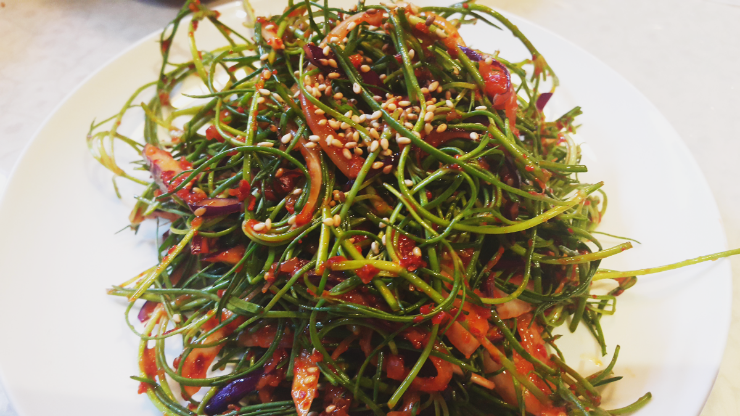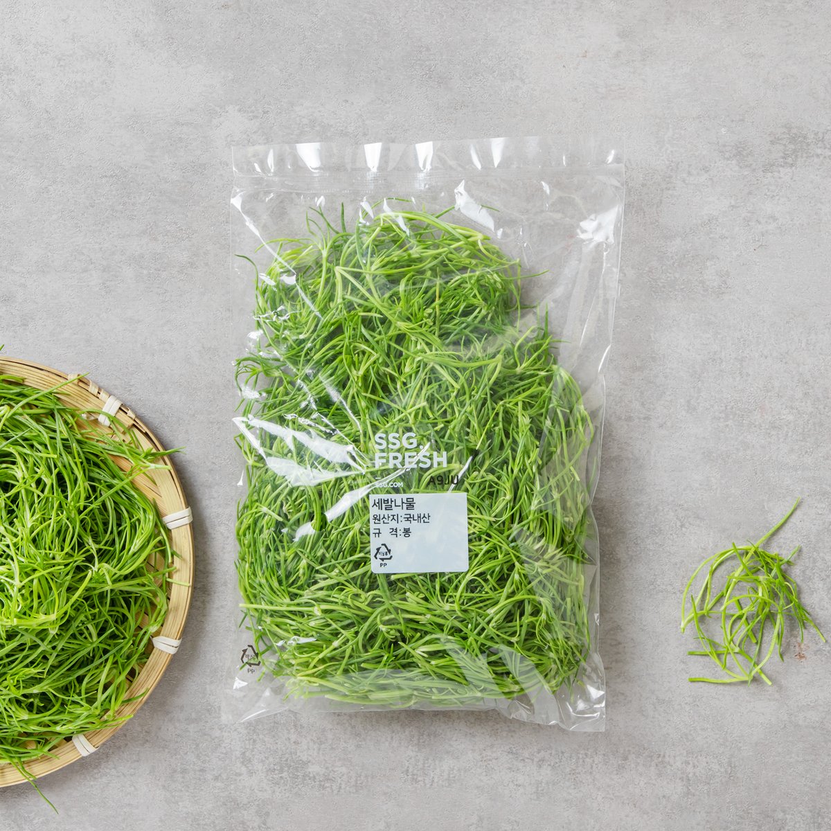 세발나물은 해안가에서 염분을 먹고 자라는 염생식물로 현지에서는 갯 나물이라고 부르기도 합니다. 세발나물은 가늘고 끝이 뾰쪽해 붙여진 이름으로 맛이 담백하면서도 좋은 향과 짭짤한 맛으로 겨우내 잃었던 입맛을 되살리는 데 도움이 됩니다. 식이섬유와 비타민을 비롯한 칼슘과 마그네슘 등의 미네랄이 풍부한 세발나물은 혈액순환과 면역력을 높이는 효능이 있습니다.