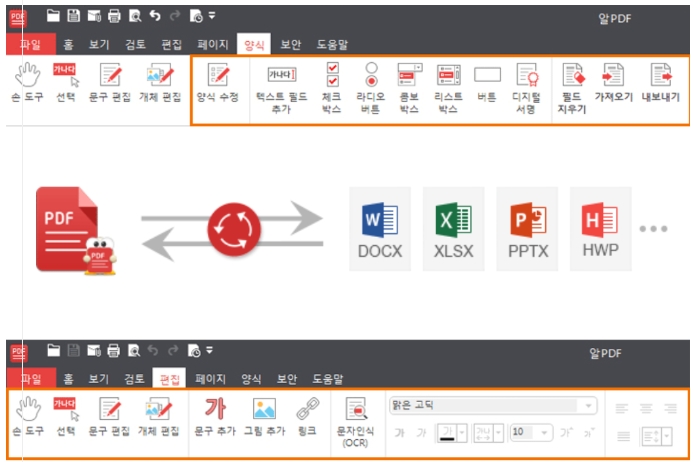 알 PDF 뷰어는 어도비 PDF 뷰어보다 파일 편집 및 PDF 파일 변환 관련하여 더욱 더 많은 기능을 포함하고 있습니다.