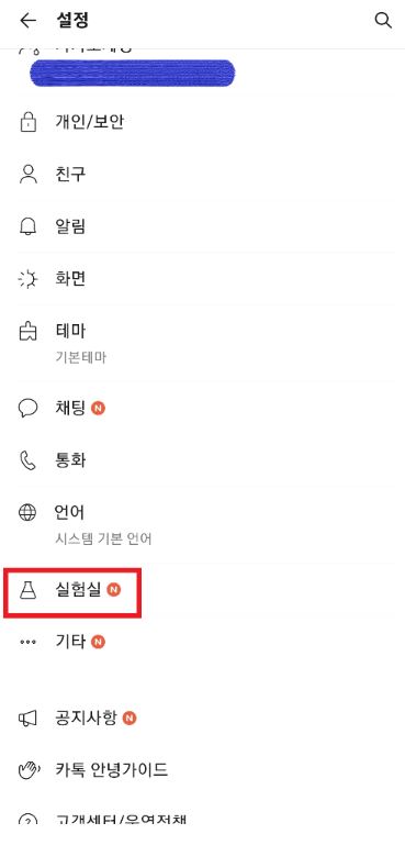 3) 스크롤을 내려서 [실험실]을 클릭합니다.