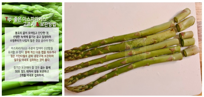 아스파라거스는 보관 방법에 따라 신선도와 맛이 크게 달라질 수 있습니다. 따라서 신선한 상태로 보관할 수 있는 방법을 찾아 보관해야 합니다. 가장 좋은 방법은 적당량을 구매해 신선할 때 섭취하는 것입니다.