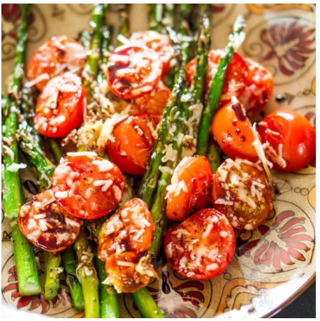 신선한 아스파라거스를 데쳐 토마토와 각종 샐러드용 잎채소와 함께 샐러드로 먹을 수 있습니다.데친 닭가슴살을 곁들여 먹는다면 훌륭한 한끼가 됩니다.