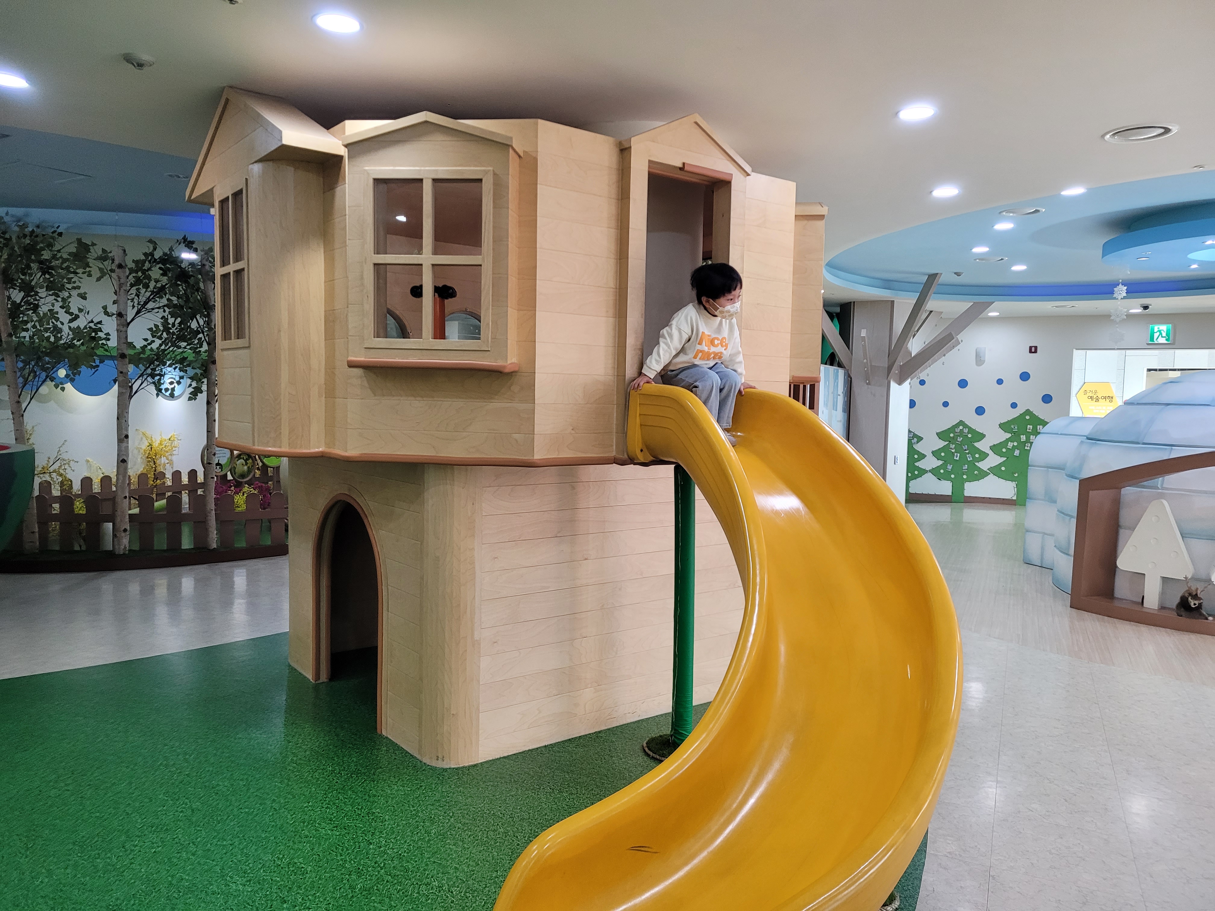 - 숲속 꿈꾸는 나무집 : 미끄럼틀이 연결되어 있어서 아이들이 정말 재미있어 한 공간인데 나무 위 오두막 모양의 집에 올라가서 망원경 체험 및 파이프통신, 미끄럼틀을 탈 수 있는 놀이공간입니다.