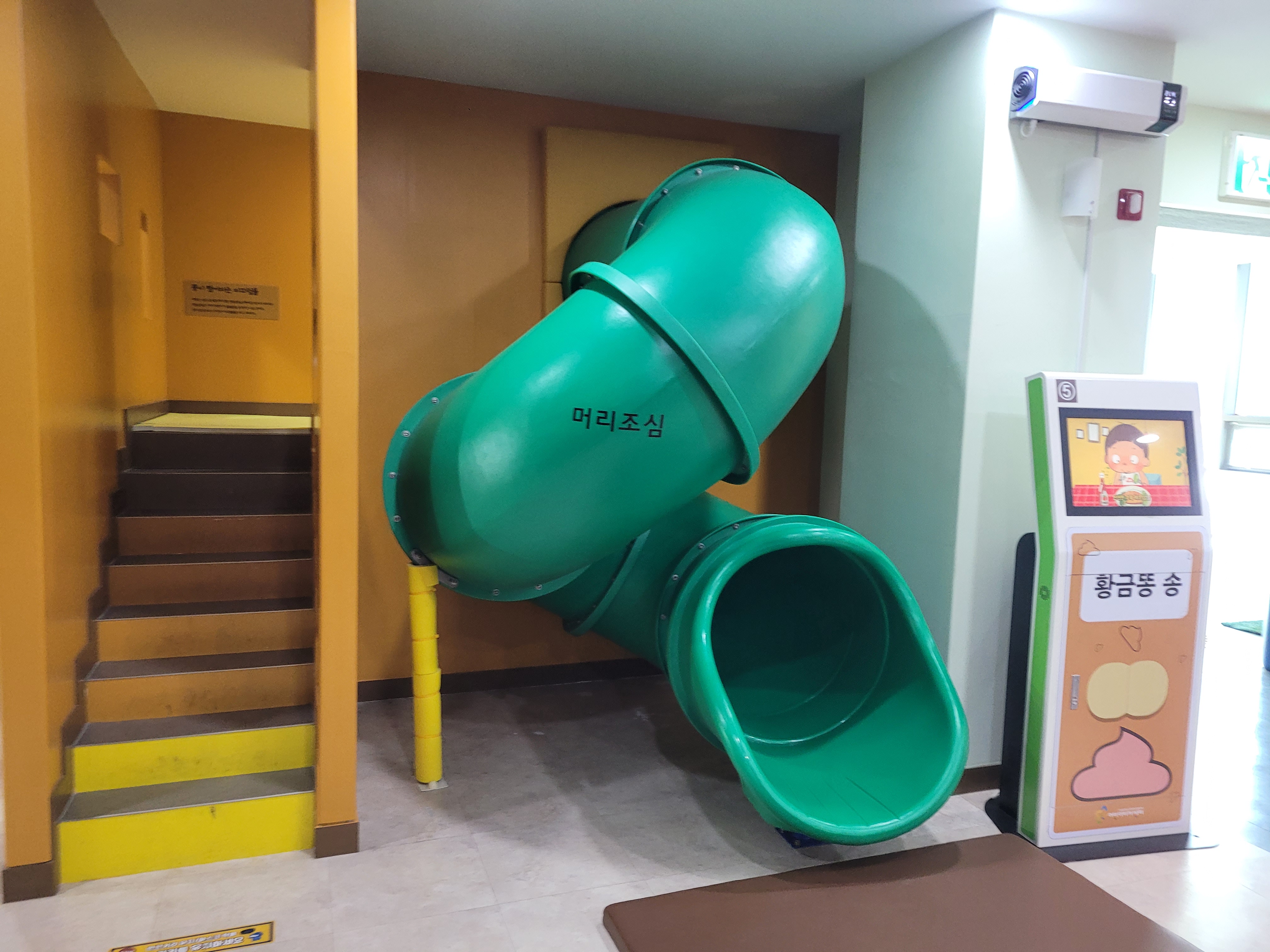 - 미끄럼틀 : 똥의 형상과 같이 말아진 똥 미끄럼틀 놀이공간으로 보통 미끄럼틀과 같아요.