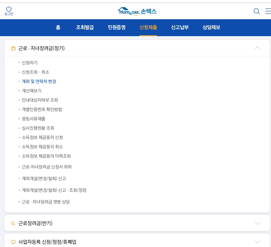 홈택스 근로장려금 바로가기