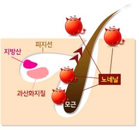 노네랄이 생성이 되고 가령취가 생기는 원인은 [노화]가 원인입니다. 나이가 들면서 신진대사가 원활하지 않아 에너지를 완전히 소모하지 못해 노폐물이 체내에 쌓이게 되는 것입니다. 노네랄은 피부에서 분비되는 지방산 중 하나인 헥사데킨산이라는 물질이 박테리아에 의해 산화되거나 분해될 때 생성이 됩니다.