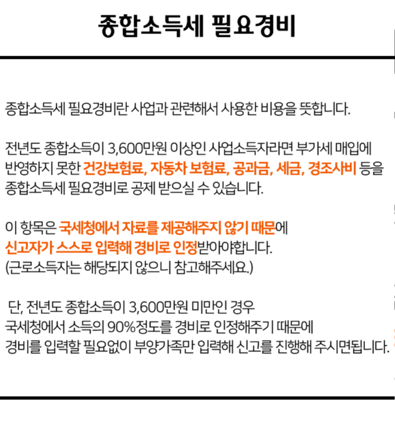 종합소득세 경비처리 필요경비 범위 및 인정항목(인건비 경조사비 임차료 등) 본문