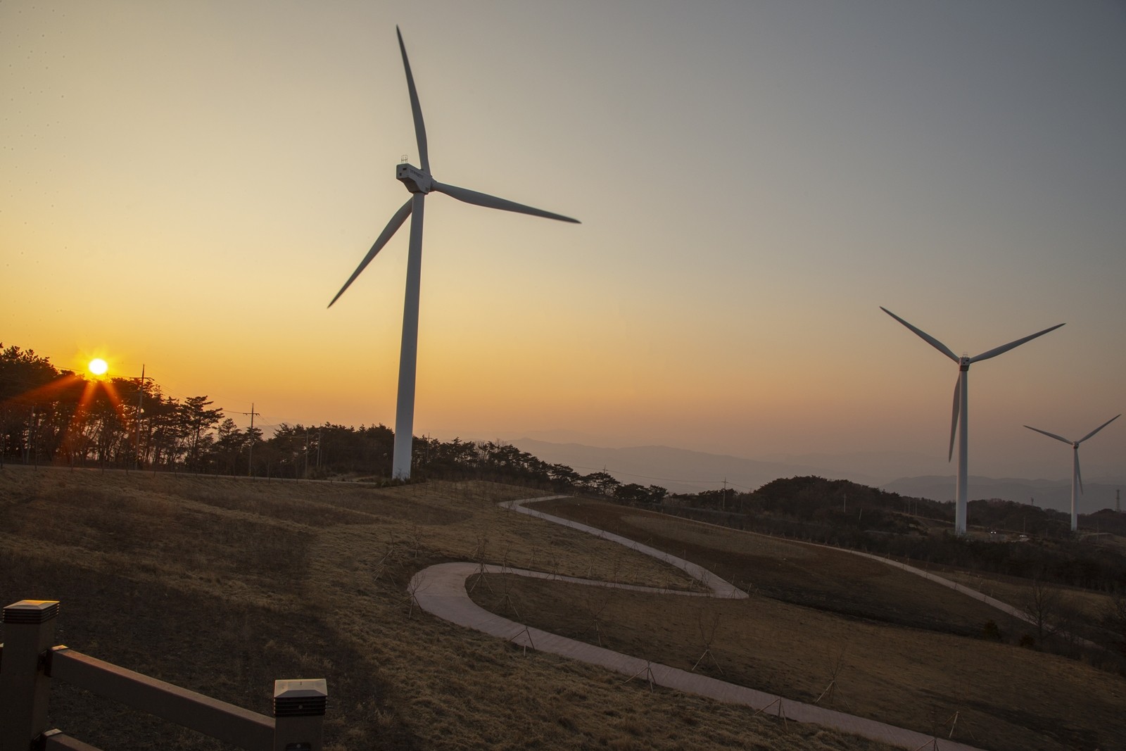 산 능선을 따라서 거대한 풍력발전기가 세워져 있는데 바람의 언덕으로 부르는 이 일대를 365일 개방하고 있습니다.