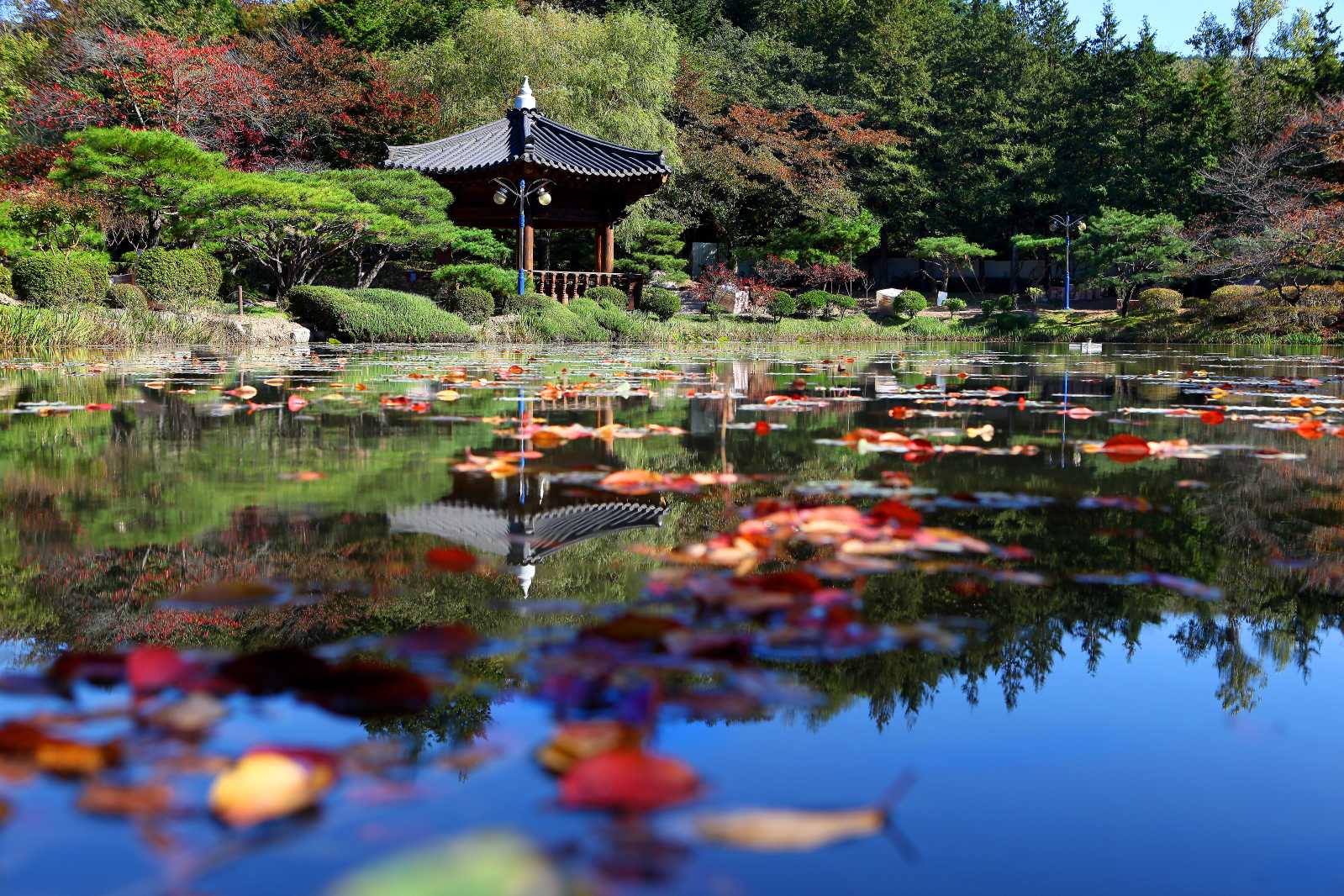 인공연못에 펼쳐진 벚꽃들은 봄이면 연인들로 붐빕니다. 여름에는 연꽃이 관광객들을 유혹하고 가을에는 오색 단풍이 사람을 끌어당기고 겨울에는 눈 덮은 정자와 연못을 배경으로 색다른 아름다움을 연출하는 여행지입니다.