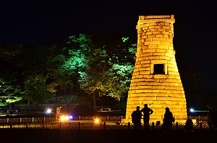 첨성대를 만든 돌은 365개 내외로 알려져 있으며 이는 일년의 날수를 표현한거라고 합니다. 27단의 돌단은 27대 선덕여왕을 상징한다고 하여 꼭대기에 정자석까지 합쳐 29단과 30단이 된다고 하며 이는 음력 한달의 날수를 상징한다고 합니다.