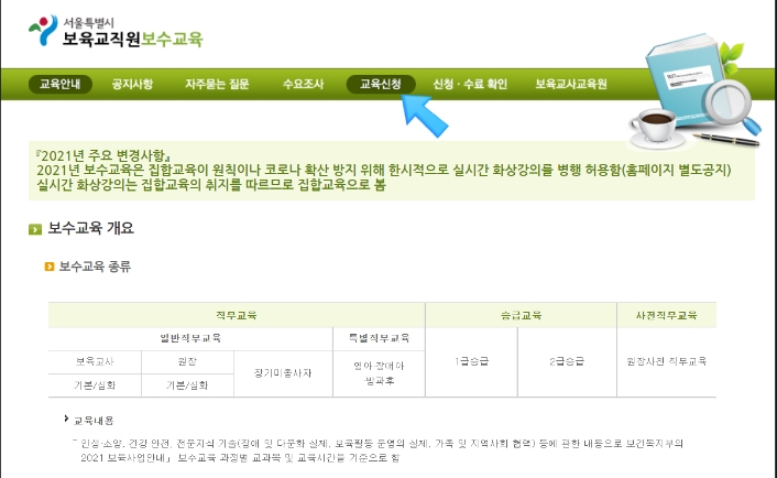 * 서울특별시 보육교직원 보수교육 사이트 : https://boyuk.eseoul.go.kr/education/main.do