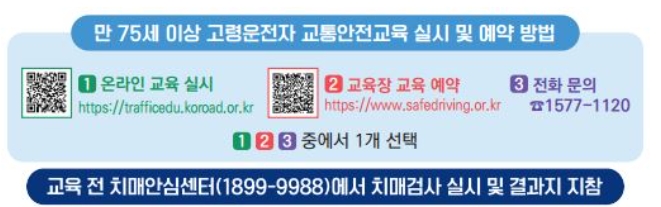 만75세 이상 고령운전자 교통안전교육 실시 및 예약방법