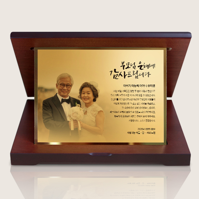 남들과는 조금 다르고, 의미 있고, 뜻깊은 선물을 드리고 싶다면 부모님 감사패에 문구를 넣어 제작하는 것을 추천합니다. 부모님 생신 선물로 정말 의미 있고, 평생 기억에 남을 수밖에 없는 선물이죠. 실제로 제 지인 중에 부모님 생신때 감사패를 제작하여 선물을 드렸더니 너무나 좋아하셨다고 합니다.